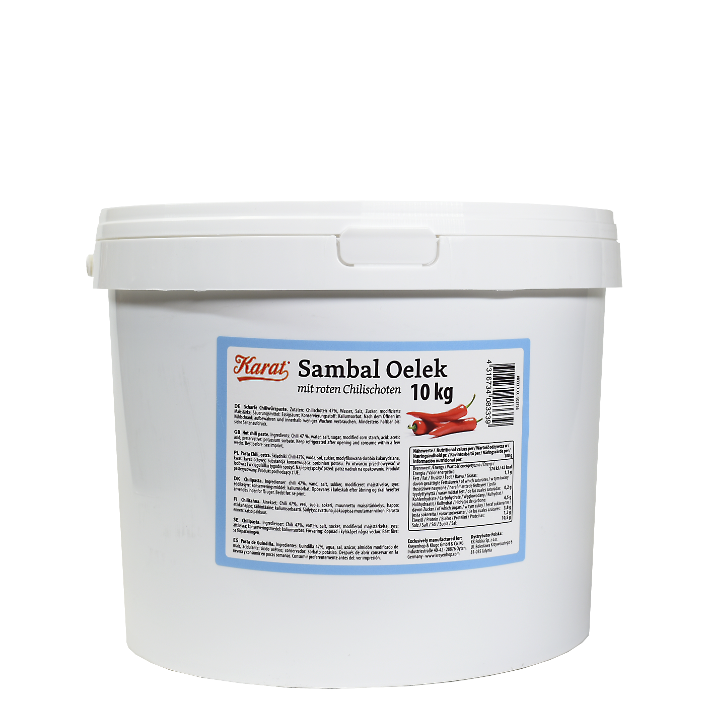 Unser Sambal Oelek (sehr scharf) ist eine intensiv feurige Chilipaste, die jedem Gericht eine authentische, scharfe Note verleiht. Hergestellt aus frisch verarbeiteten roten Chilischoten und minimalen Zutaten für einen puren Geschmack, ist diese Paste besonders für Liebhaber kräftiger Schärfe geeignet. Ideal für asiatische, indonesische und internationale Gerichte, kann Sambal Oelek als Würzmittel in Suppen, Saucen, Fleisch- und Gemüsegerichten verwendet oder als scharfer Dip serviert werden. Dank der streichfähigen Konsistenz lässt es sich leicht dosieren – perfekt für individuelle Schärfe nach Geschmack. Mit seiner sehr scharfen Intensität, hohen Ergiebigkeit und langen Haltbarkeit ist unser Sambal Oelek (sehr scharf) eine hervorragende Wahl für Gastronomie, Großküchen und den Einzelhandel. Eine unverzichtbare Zutat für alle, die ihren Speisen eine feurige Schärfe und einen authentischen Chili-Geschmack verleihen möchten!